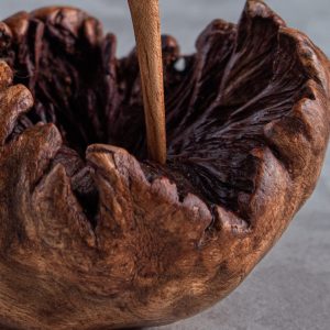 These distinctive plants are commonly referred to as “wood roses.” These growths are so solid and dense that even when the tree rots away and dies, they remain intact. This particular species of wood was used to create these exquisite, one-of-a-kind parasitic carvings.