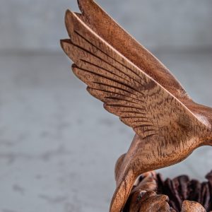 This sculpture is entirely handmade, from carving to finishing with wax polish. Made under fair trade principles using sustainable Jempinis, parasite wood, and non toxic seals.